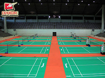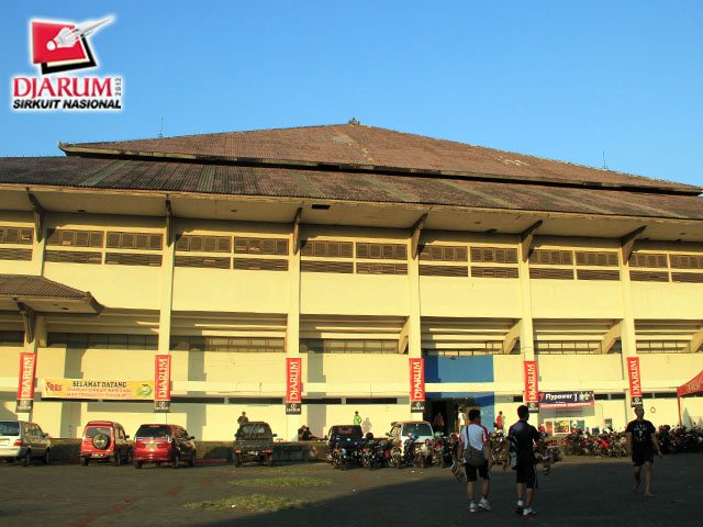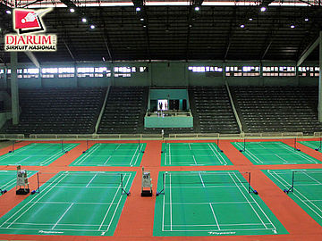 Tampak lapangan GOR Jati Diri dari sudut atas kanan lapangan.