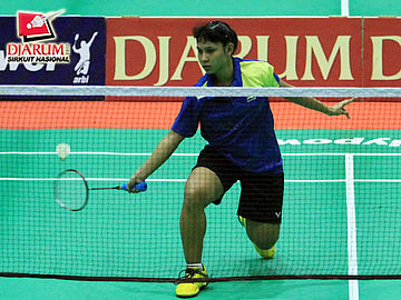 Febby Angguni A. (Djarum Kudus) sedang mengembalikan kok yang di oper oleh Onta dari Jepang.