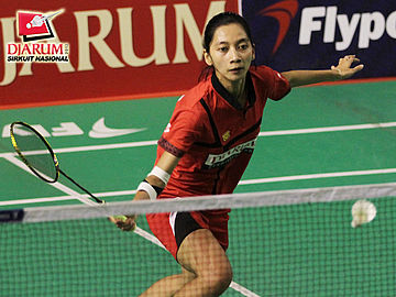 Tunggal Dewasa Putri asal PB Djarum Kudus, Rosaria Yusfin berusaha mengembalikan bola ke arah Lidya Ananta (PTP).