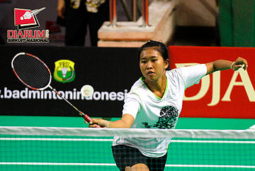 Rifa Putri Aida (PB Djarum) berhasil menyambut pengembalian dari Yuliani (Bisma Ubud).