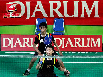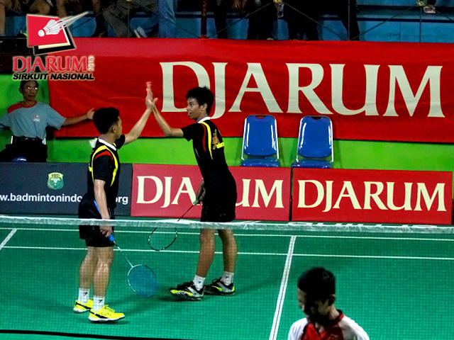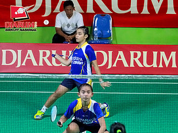 Randy/Ayu (Fila Watch) mengembalikan kok ke arah pasangan Saleh/Febriana (D Ten's).