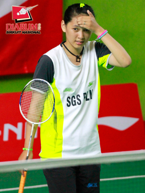 Ekspresi Merissa Findiani (SGS PLN) saat harus kehilangan poin.