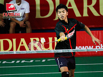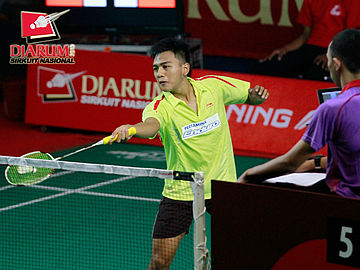 Ryan Fajar (PB Djarum) menyambut serve dari Shuhei Hayasaki (Hitachi Jepang).