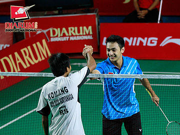 Indra Setiawan (Pertamina Indonesia) menyambut serve dari Jonathan Christie (Pelatnas).