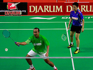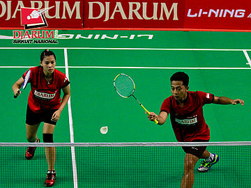 Trikusharjanto / Vita Marisa menerima serve lawan.