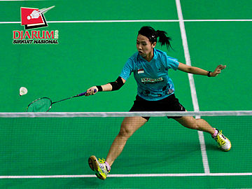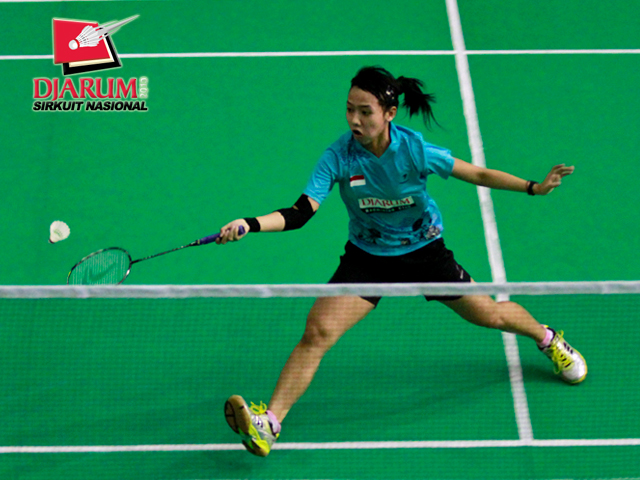 Ana Rovita (Djarum Kudus) mencoba menggapai kok.