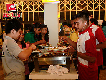 Para atlet PBSI Lampung saat mengantri makanan di Pandan Wangi Hotel Sheraton.