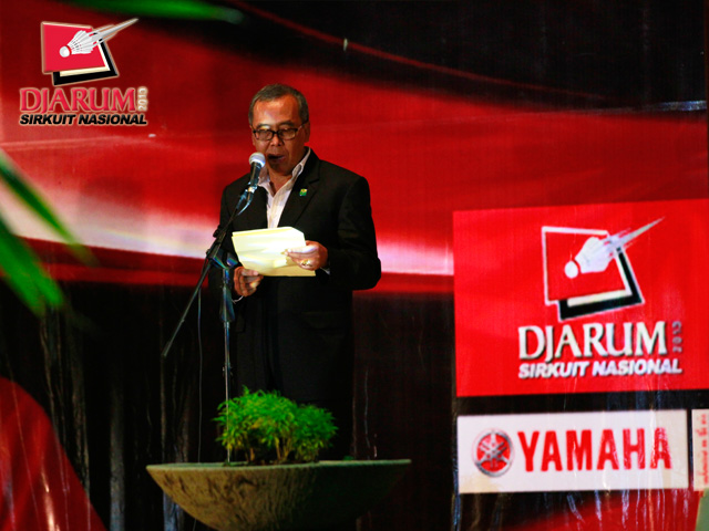 Ketua Pelaksana Djarum Sirkuit Nasional Li-Ning Lampung Open 2013 saat memberikan sambutan.