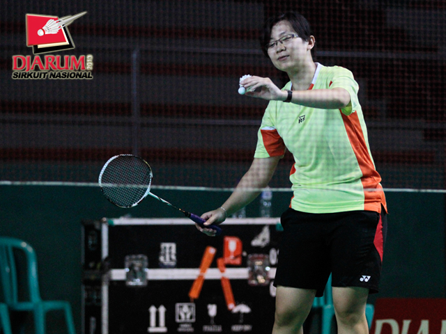 Vicky Rizky/Jessica Shohan (PB Djarum) bersiap menyambar pengembalian dari M. Yusuf/Zahrotun Khoirunisa (Hevindo).