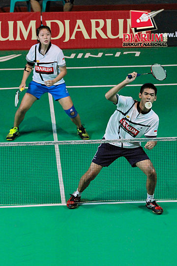 Jeka Wiratama/Chintia Rhizta (PB Djarum) bersiap menyambut pengembalian dari Stefan/Novalita (Mutiara Bandung).