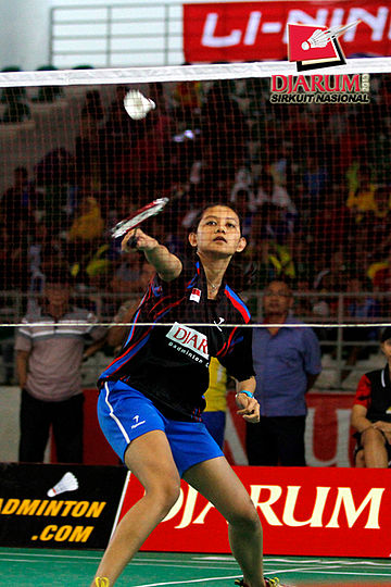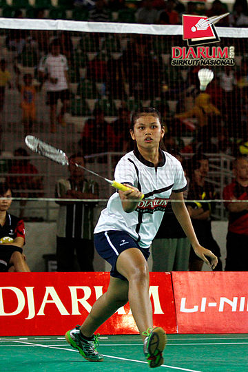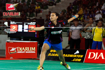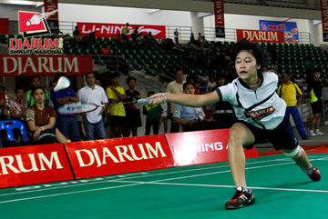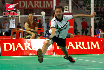 Marsa Indah (PB Djarum) berusaha menggapai pengembalian dari Febrita Adisthya (Mutiara Bandung).