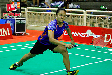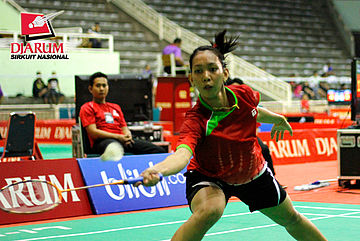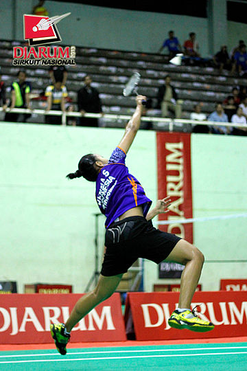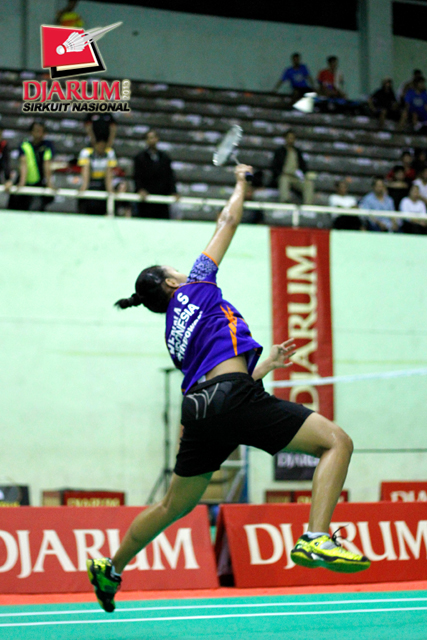 Rena Suwarno (Pelatnas) bersiap menyambut pengembalian dari Iustitia Idea (Rajawali).