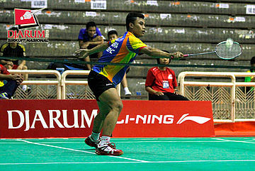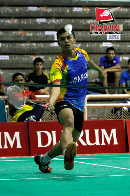 Rifan Fauzin (Pelatnas) mengembalikan shuttlecock ke arah Eko Kusproyanto (Mandiri).