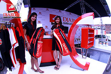 Dua usher terlihat sedang berpose di booth Djarum.