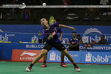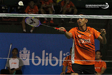 Alberto Alvin Yulianto Berusaha Menggapai Shuttlecock
