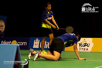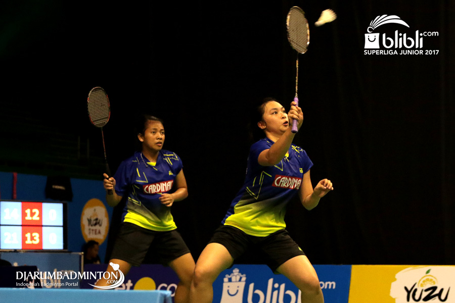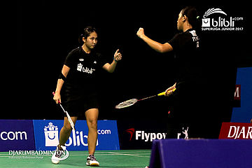 Annisya Widya Permatasari/Putri Andini Wahyuningrum (Mutiara Cardinal) Mengembalikan Shuttlecock