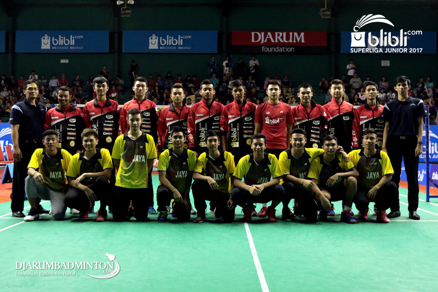 Tim Putra U-19 Djarum (Belakang) Berfoto Bersama Tim Putri U-19 Jaya Raya Jakarta (Depan) Sebelum Memulai Partai Final