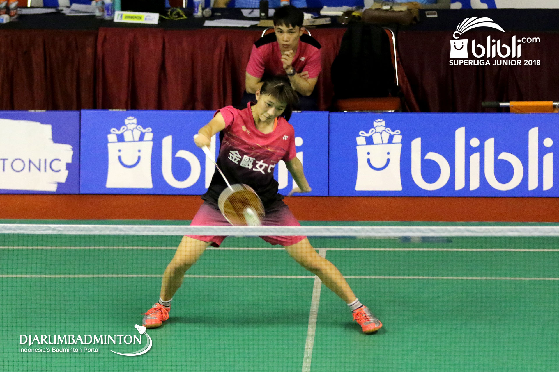 HUANG,CHIEN-TZU (KEELUNG HIGH SCHOOL-CHINESE TAIPEI) melepaskan serangan