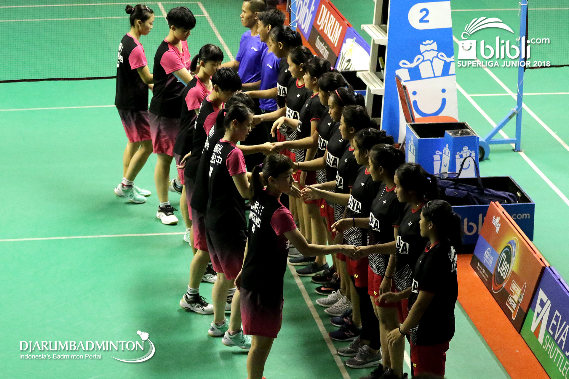 Tim putri U19 PB. Djarum berkumpul sebelum bertanding