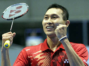 Pebulutangkis kebanggaan Indonesia, Taufik Hidayat menang mudah atas Riichi Takeshita di DBL Arena, Surabaya, Minggu (3/2). Takeshita yang kini masih...