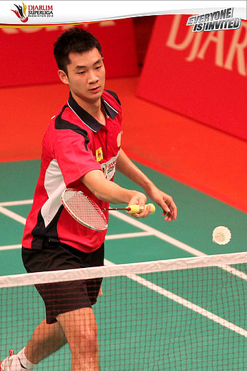 Wang Zhengming (SGS PLN) menyambut serve dari Chong Wei Feng (Malaysia Tigers)