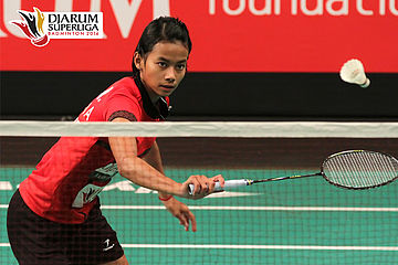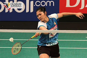 Ekspresi Ana Rovita saat shuttlecock keluar lapangan