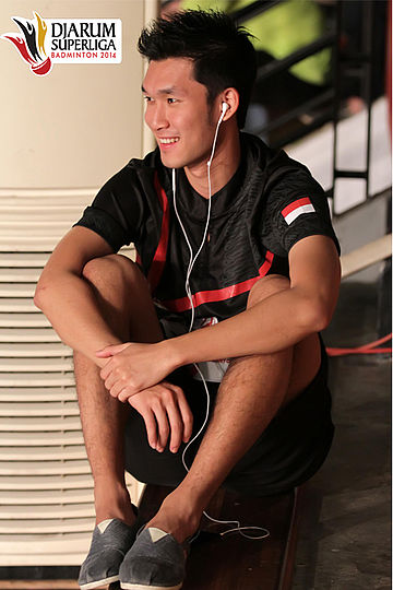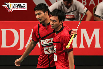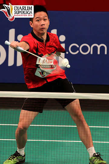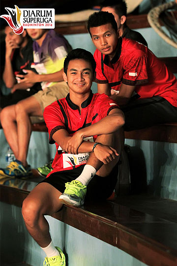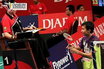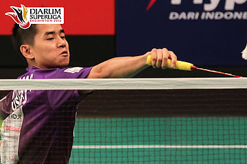 Simon Santoso melayangkan pukulan keras kepada lawan