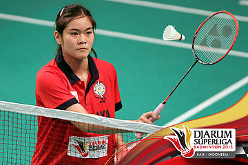 Busanan Ongbumrungpan (Jaya Raya) bersiap menyambut pengembalian dari Devi Yunia (USM Blibli).