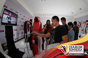 Suasana booth merchandise Djarum Superliga 2015 yang diserbu pengunjung.