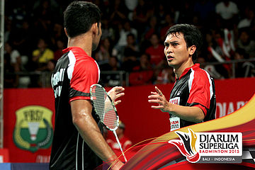 Kekompakan Berry Anggriawan/Moh. Ahsan (Djarum Kudus) di lapangan.
