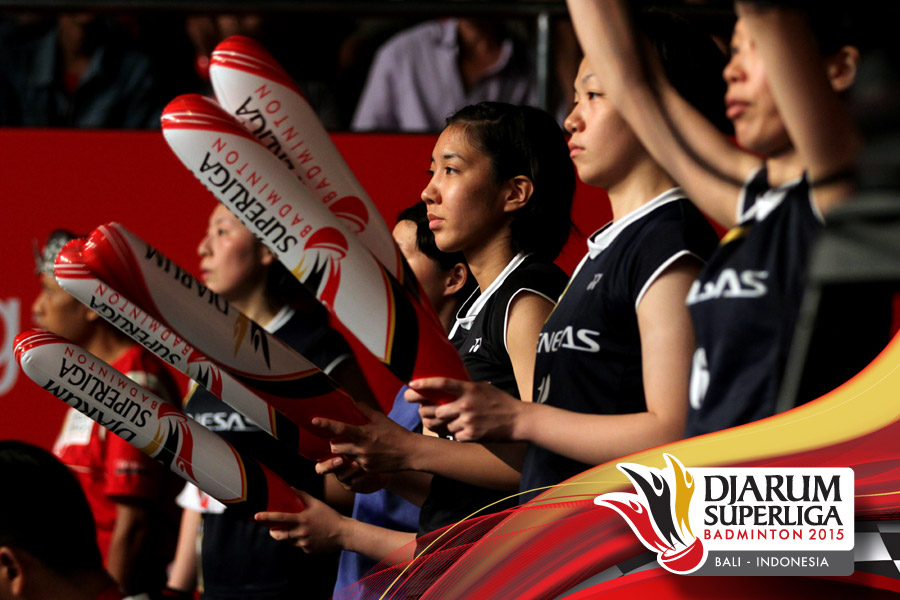 Sejumlah pemain Renesas Jepang memberikan dukungan kepada rekannya yang sedang bertanding.