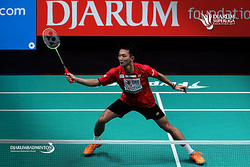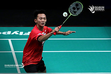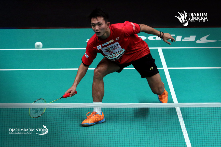 Ihsan Maulana (PB Djarum) menyambut pengembalian.