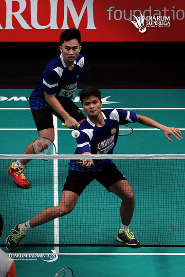 Reinard Dhanriano/Ricky Karanda Suwardi (Mutiara Cardinal) menyambut pengembalian.