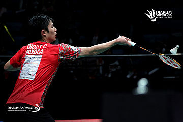 Chou Tien Chen (PB Musica Champion) mengembalikan shuttlecock.