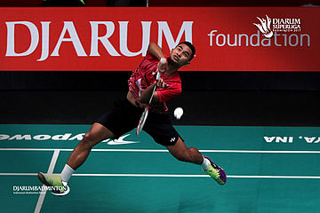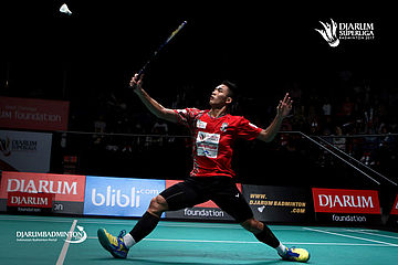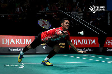 Jonatan Christie (PB Musica Champion) menyambut pengembalian.