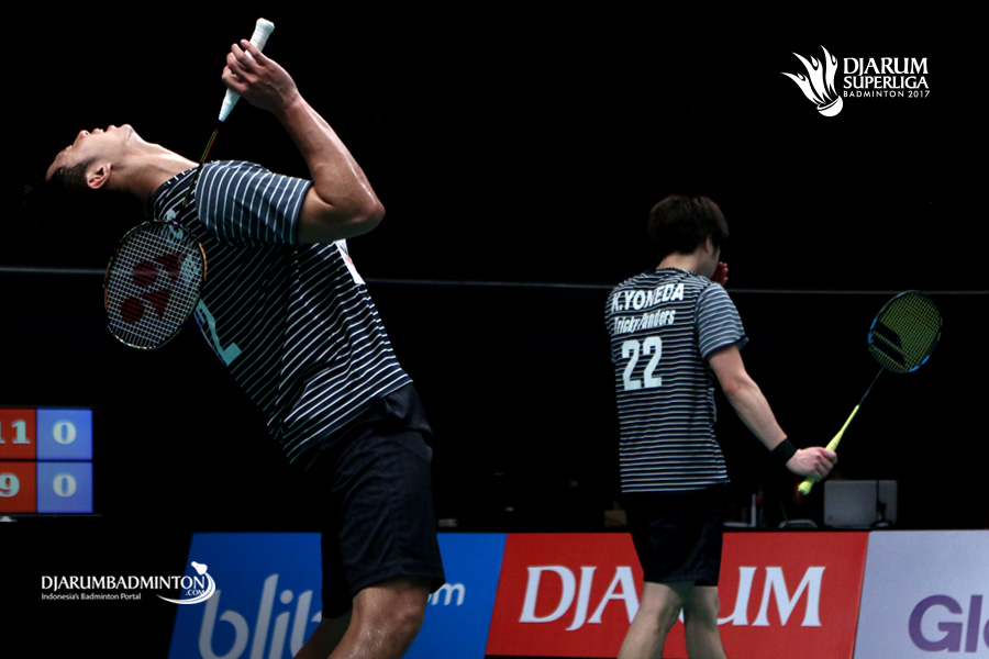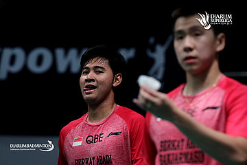 Angga Pratama/Marcus Fernaldi Gideon (PB Berkat Abadi) menyambut pengembalian.