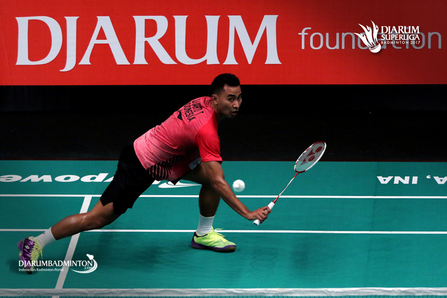 Jonatan Christie (PB Musica Champion) gagal menghadang serangan.