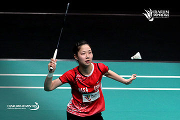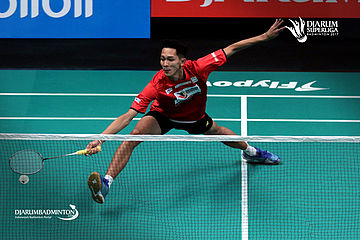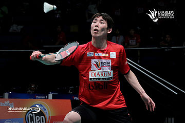 Son Wan Ho (PB Djarum) menghadang serangan.