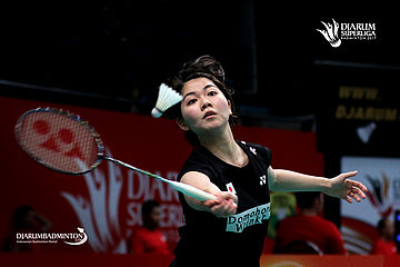 Miku Yasuda (PB Tjakrindo Masters) menyambut pengembalian.