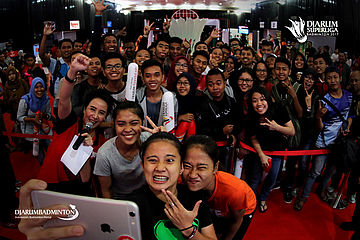 Yuni Kartika, Gregoria, Anggia dan Ni Ketut selfe bersama para penggemarnya.