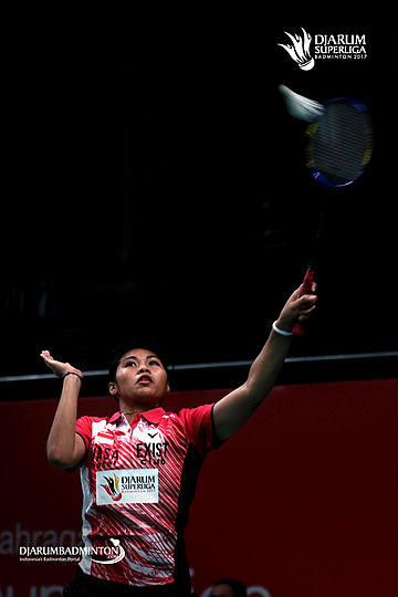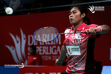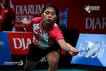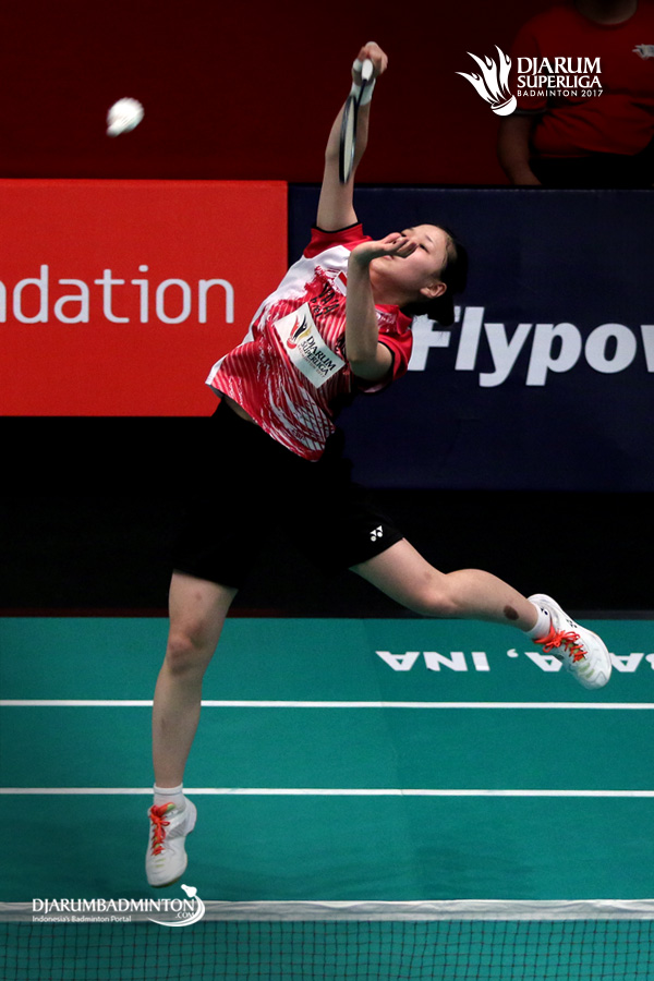 Yasuda Miku (PB Tjakrindo Masters) menyambar pengembalian tanggung.