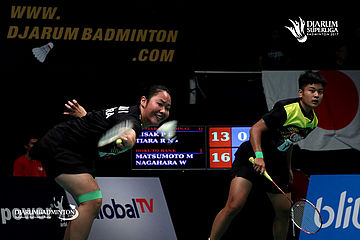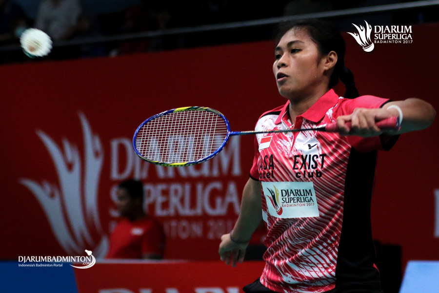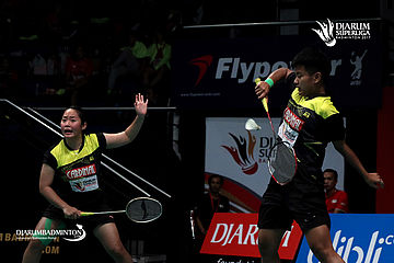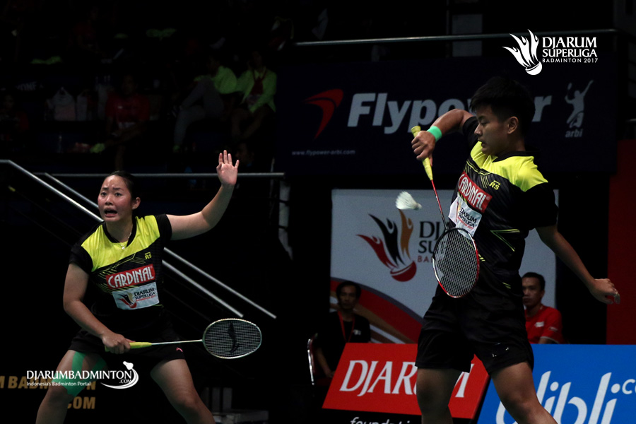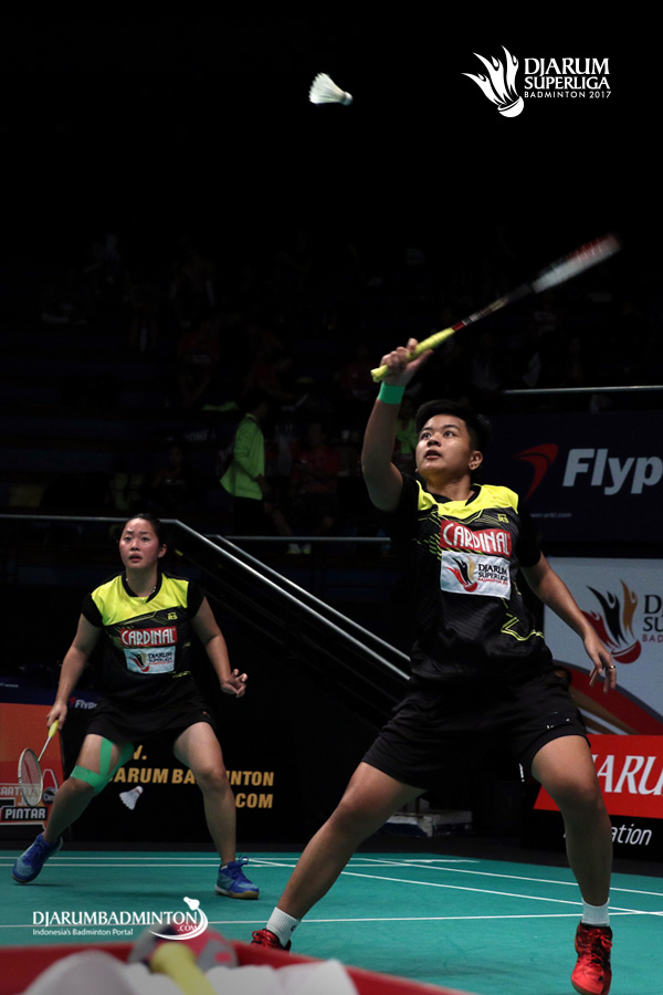 Nisak Puji/Tiara Rosalia (PB Mutiara Cardinal) menyambut pengembalian.