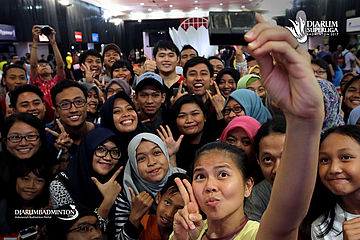 Greysia Polii memberikan tanda tangan kepada penggemarnya.