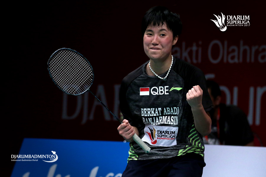 Selebrasi kemenangan Yip Pui Yin (PB Berkat Abadi).