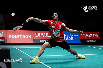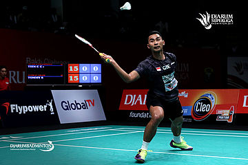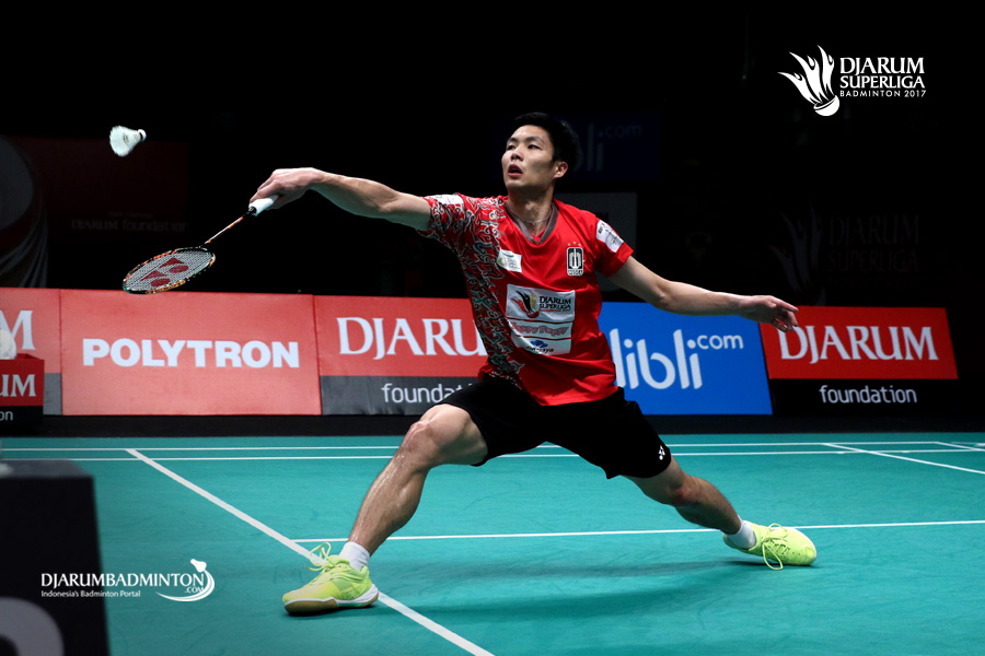 Chou Tien Chen (PB Musica Champion) mengembalikan shuttlecock.