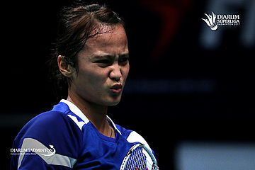 Ekspresi kekecewaan Hanna Ramadhini (PB Mutiara Cardinal).