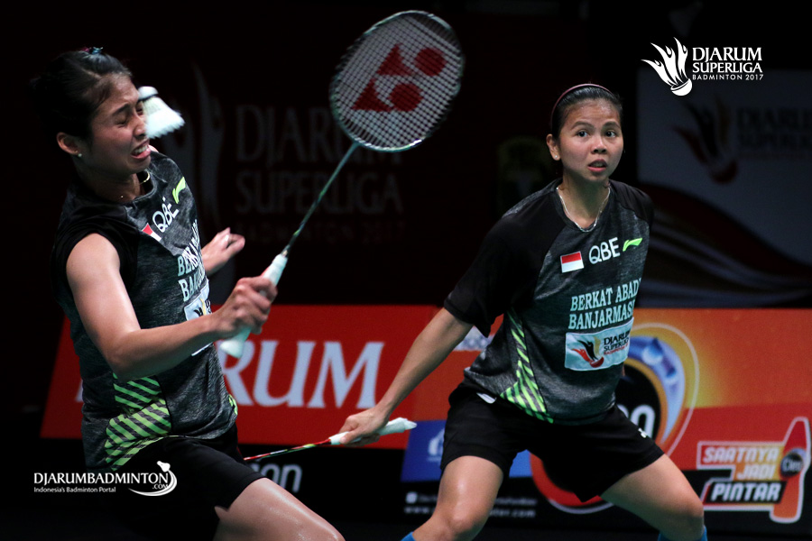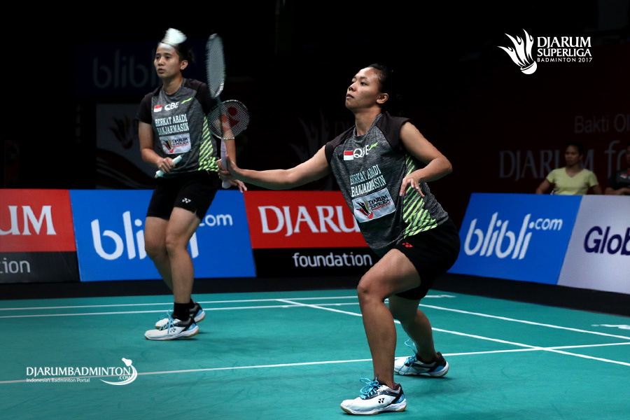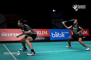 Greysia Polii/Rizki Amelia (PB Berkat Abadi) gagal menghadang serangan.