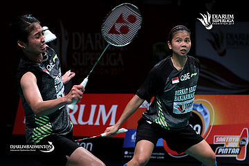Anggia Shitta/Della Destiara (PB Berkat Abadi) bersiap menyambut pengembalian.