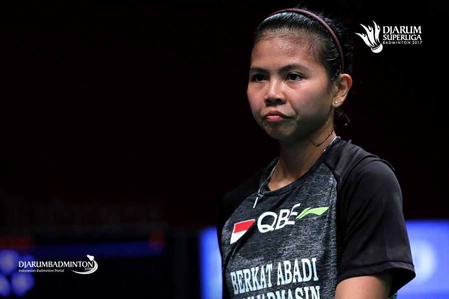 Ekspresi kekecewaan Greysia Polii (PB Berkat Abadi).