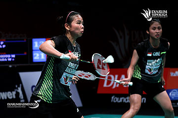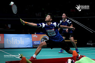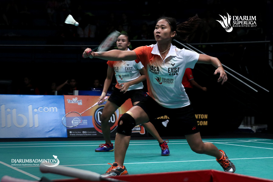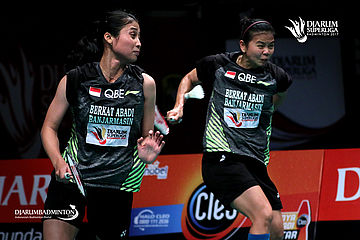 Greysia Polii/Rizki Amelia (PB Berkat Abadi) menghadang serangan.